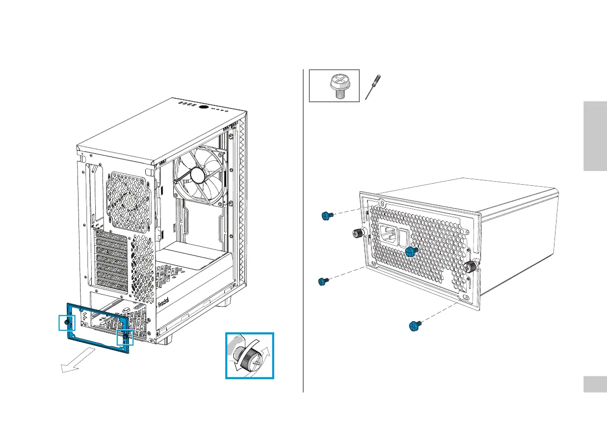 Installation Netzteil / Installer le bloc d’alimentation / Instale la fuente de alimentación / Installera nätaggregatet / Установите блок питания / 電源装置の取り付け / 安装电源 / 安裝電源供應器