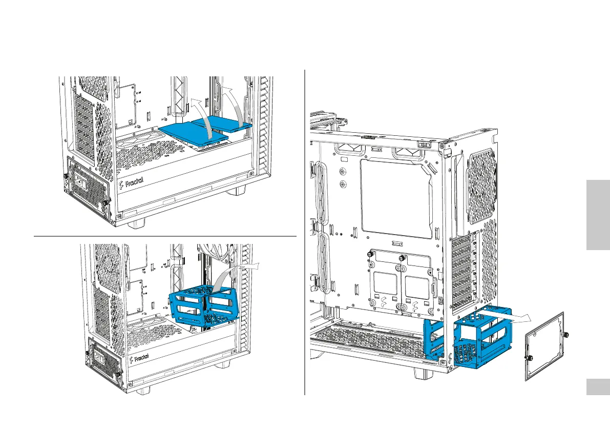 Laufwerkskä󰘰g herausnehmen / Déplacer une cage de disque dur / Retire una caja de disco duro / Ta bort en hårddiskbur / Снимите отсек дискового накопителя / ハードドライブケージの取り外