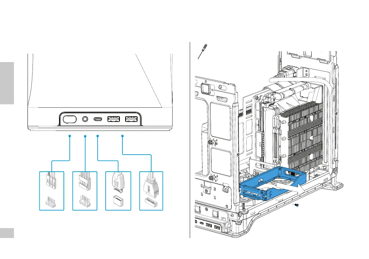 para E/S frontal / Koppla in kablar till fronten / Подсоедините кабели передних устройств