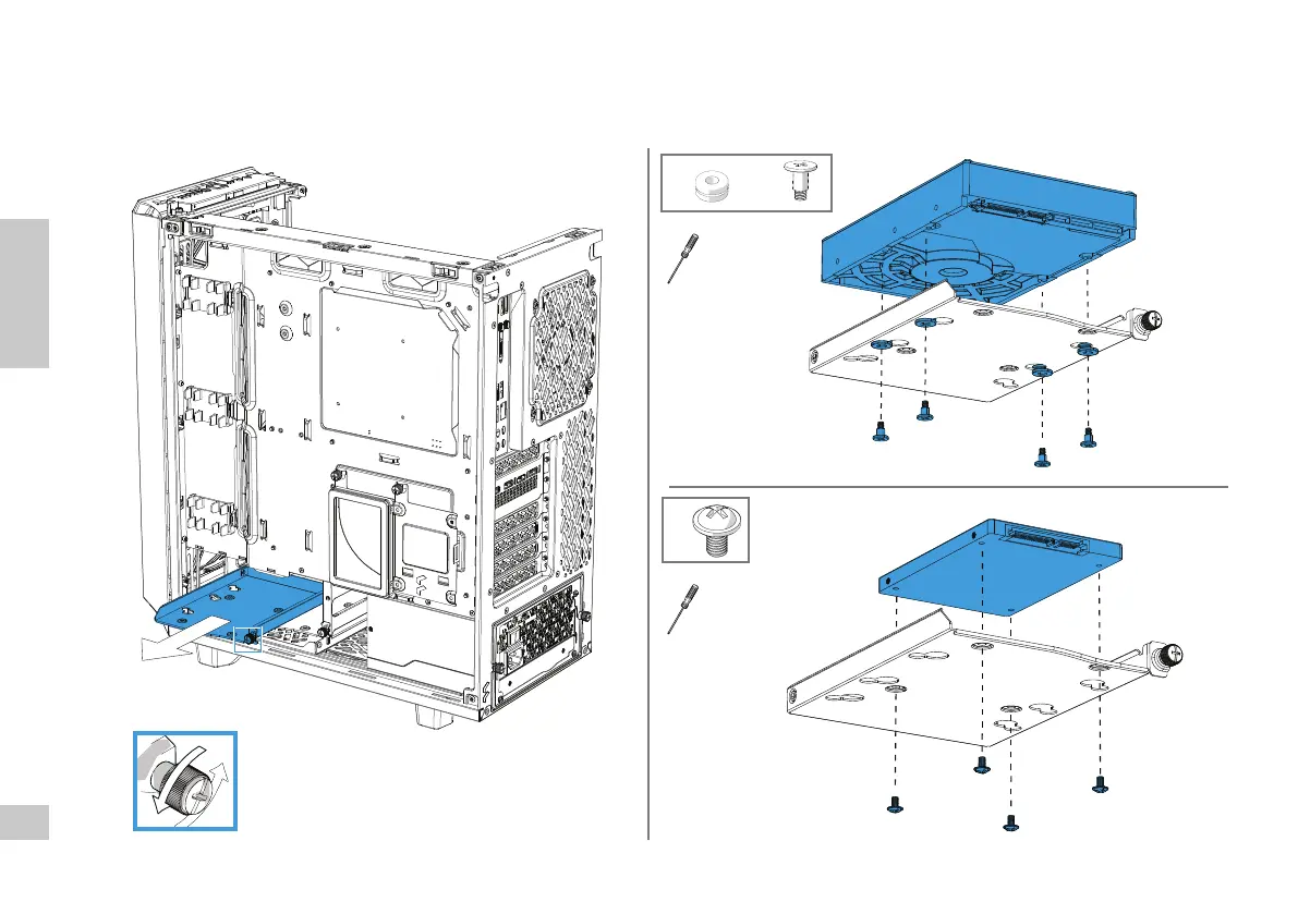 Installation 3,5-/2,5-Zoll-Laufwerk / Installer un disque dur de 3,5” ou 2,5” / Instale una unidad de 3,5”/ 2,5” / Installera en 3.5”/ 2.5” disk / Установите накопитель 3.5”/ 2.5” /