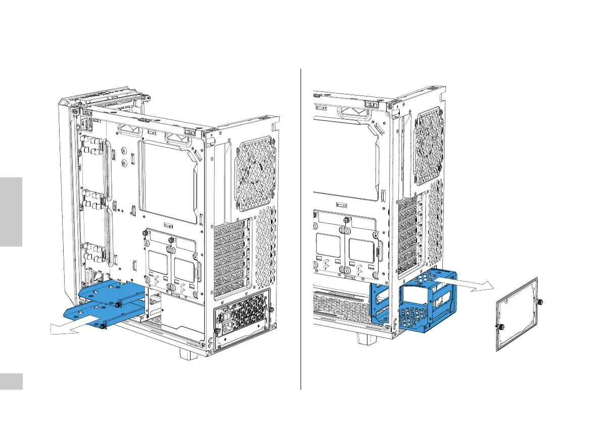 Laufwerkskä󰘰g herausnehmen / Déplacer une cage de disque dur / Retire una caja de disco duro / Ta bort hårddiskburen / Снимите отсек дискового накопителя / ハードドライブケージの取り外し