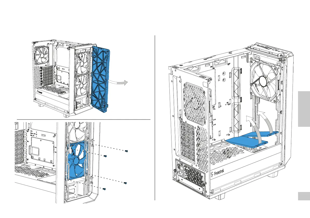 Inlays ausbauen für zusätzlichen Platz für Lüfter oder Radiatoren / Retirer un ou deux inlays pour l’espace ventilateur ou radiateur / Retire uno o dos insertos para el espacio del ventilador o radiador /