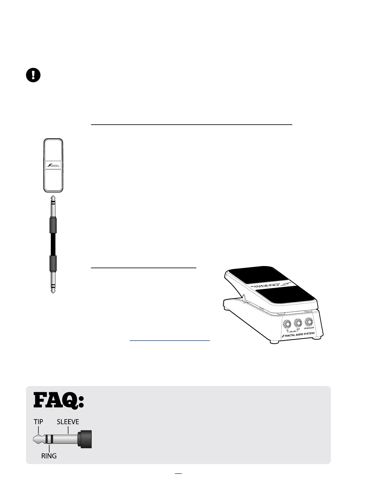 the range of 10–100kΩ. Expression pedals must be connected using Tip-Ring-Sleeve