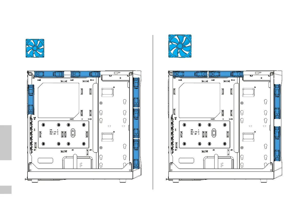 Mögliche Lüfteranordnung / Emplacements possibles des ventilateurs / Posibles ubicaciones de los ventiladores / Möjliga 󰘱äktpositioner / Места для установки вентиляторов / ファンを設置できる場所 /