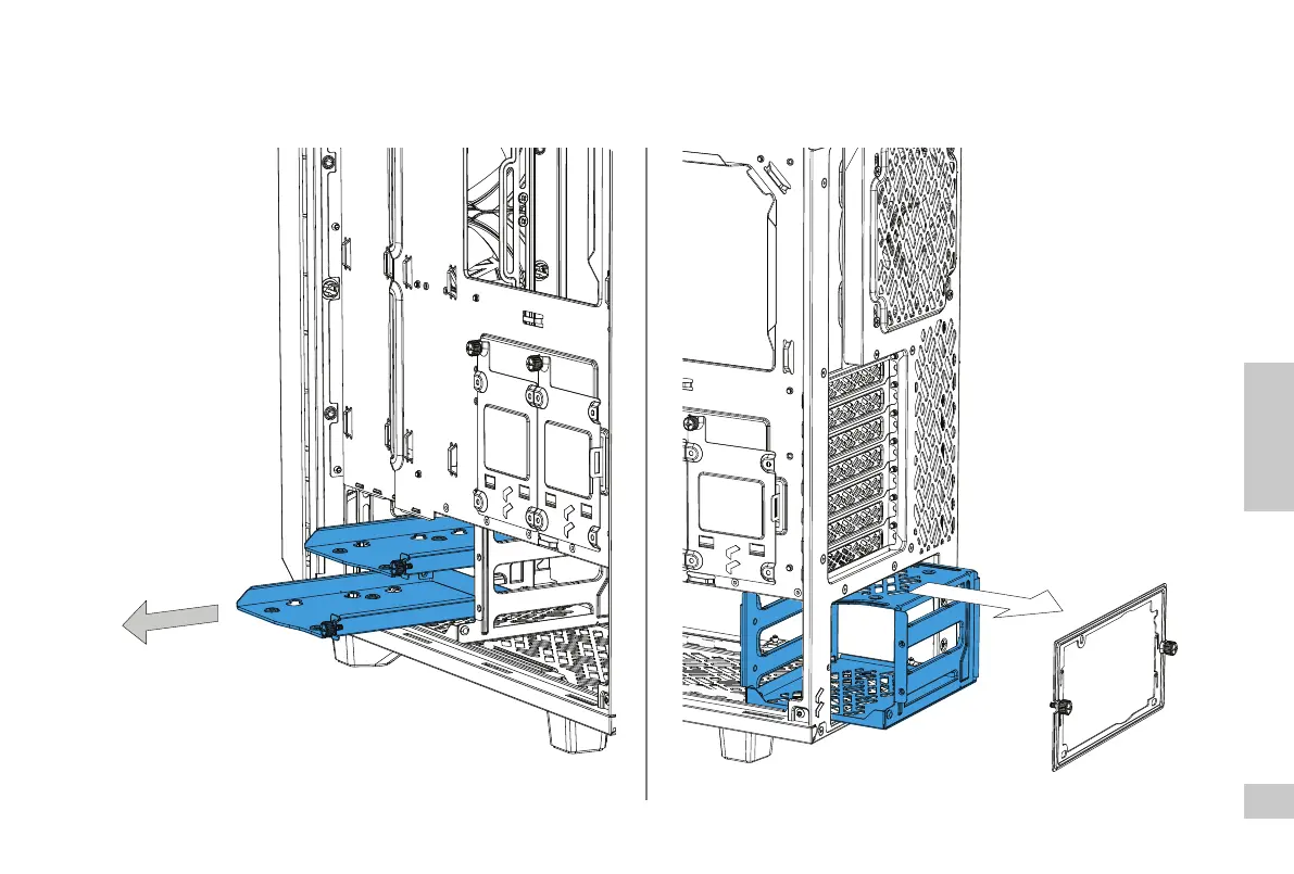 Laufwerkskä󰘰g herausnehmen / Déplacer une cage de disque dur / Retire una caja de disco duro / Ta bort hårddiskburen / Снимите отсек дискового накопителя /