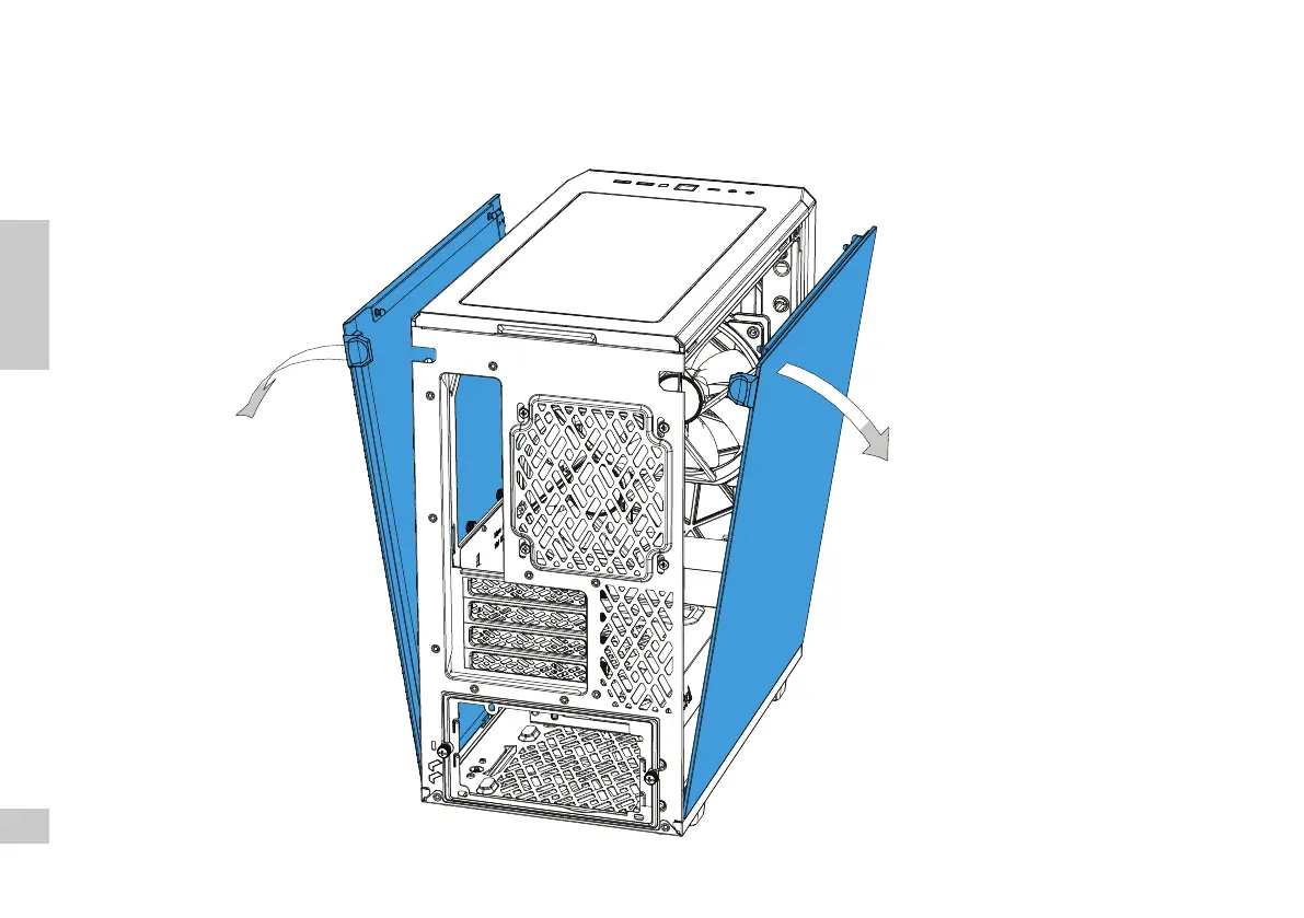 Ausbau Seitenbleche / Enlever les panneaux latéraux / Retire los paneles laterales / Montera av sidopaneler / Снимите боковые панели / 側面パネルの取り外し / 拆下侧面板 / 拆除側面面板
