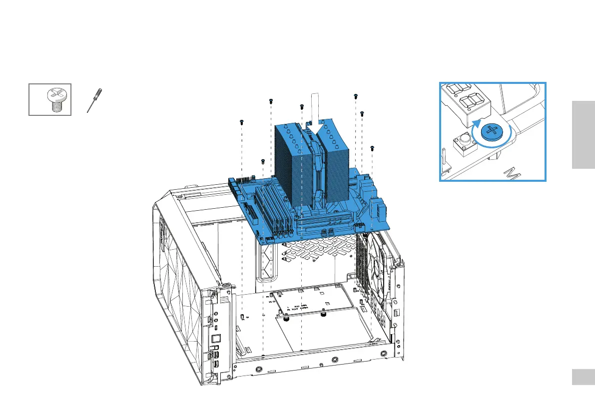 Installation Hauptplatinenzubehör / Installer l’ensemble carte mère / Instale la placa base / Installera moderkortet / Установите сборку материнской платы / マザーボード アセンブリの取り付け /