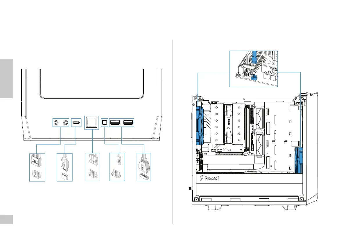 Anschlusskabel für Front-I/O und Lüfter / Câbles de connexion des E/S avant et des ventilateurs / Conecte los cables para los ventiladores y E/S frontales / Koppla in kablar till fronten och 󰘱äktarna /