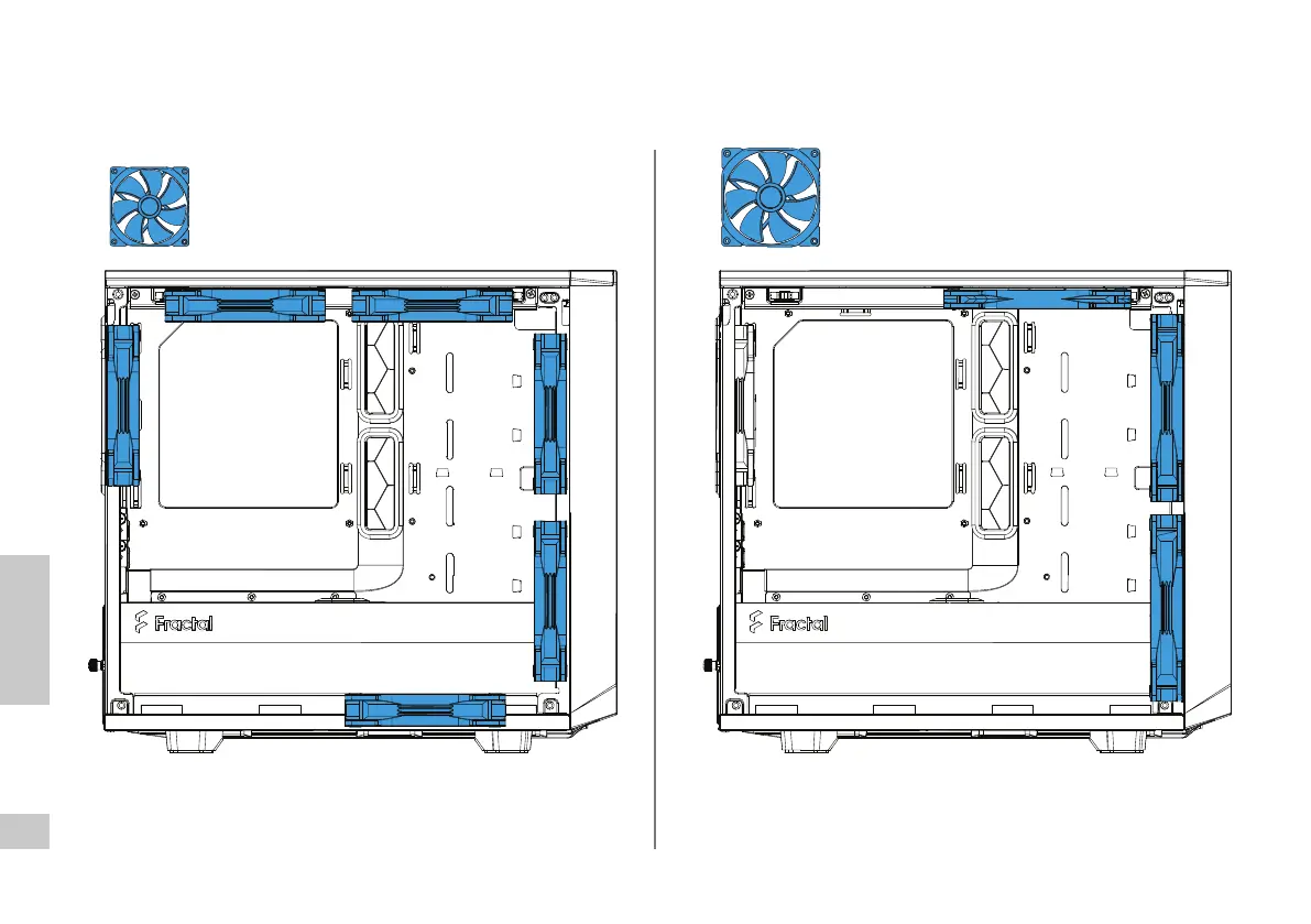 Mögliche Lüfteranordnung / Emplacements possibles des ventilateurs / Posibles ubicaciones de los ventiladores / Möjliga äktpositioner / Места для установки вентиляторов / ファンを設置できる場所 /