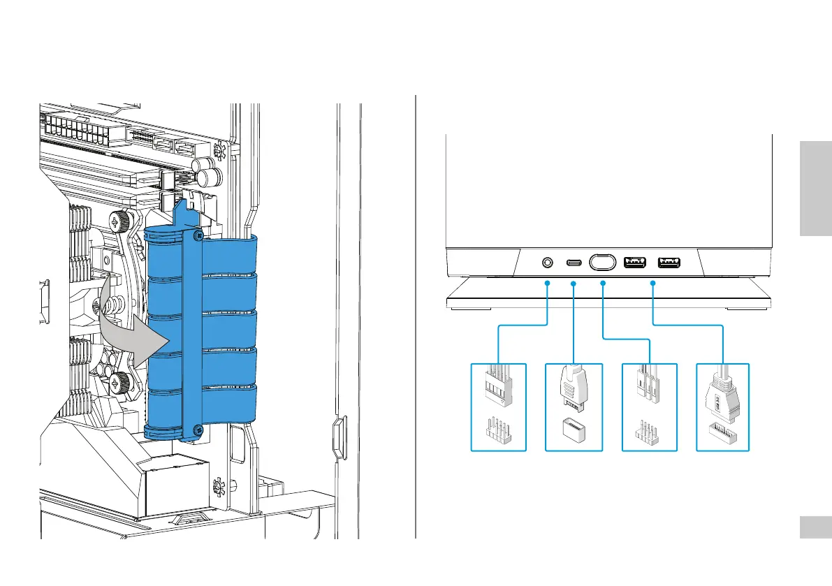 para E/S frontal / Koppla in kablar till fronten / Подсоедините кабели передних устройств