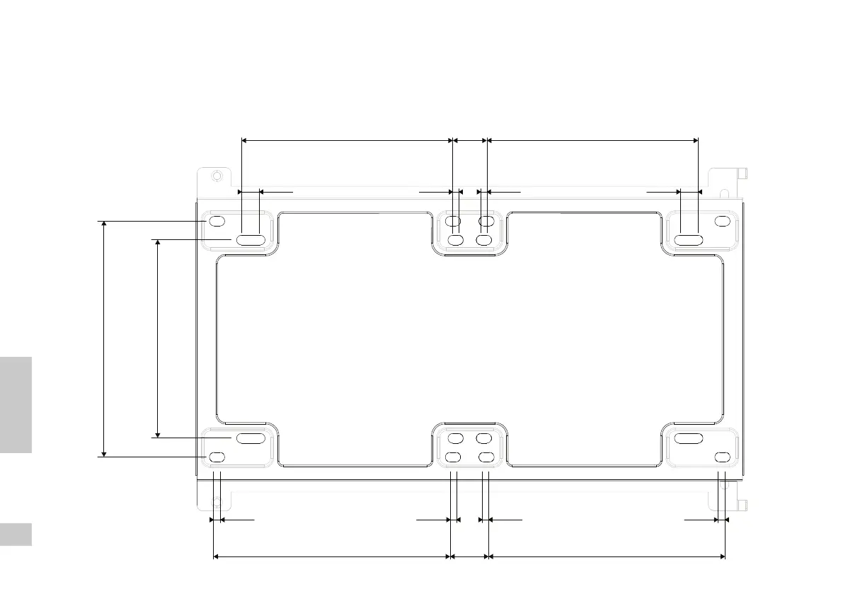 Abmessungen der Frontlüfter-Halterung / Dimensions du support de ventilateur avant / Dimensiones del soporte del ventilador frontal / Dimensioner för främre 󰘱äktplatta /