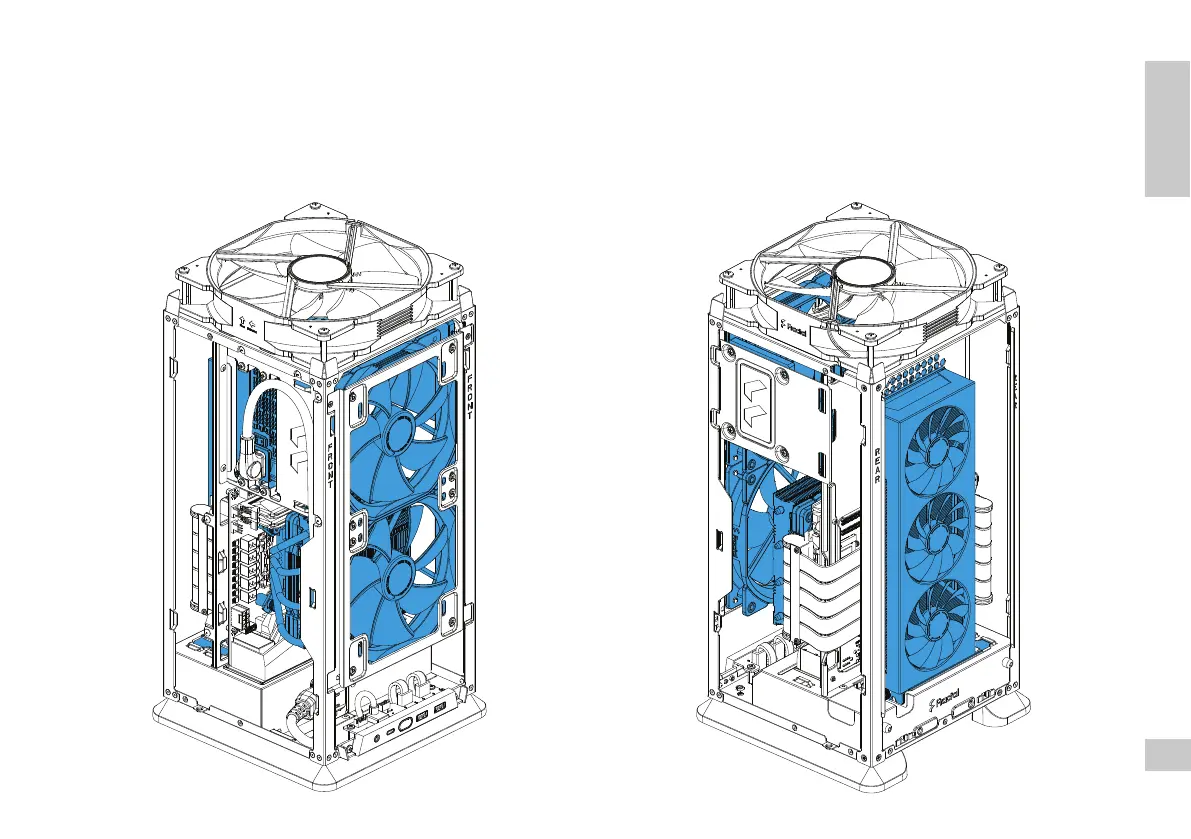 Front fans: 2 x 140 mm (fan bracket) GPU Width: 40 mm (up to 56 mm possible)