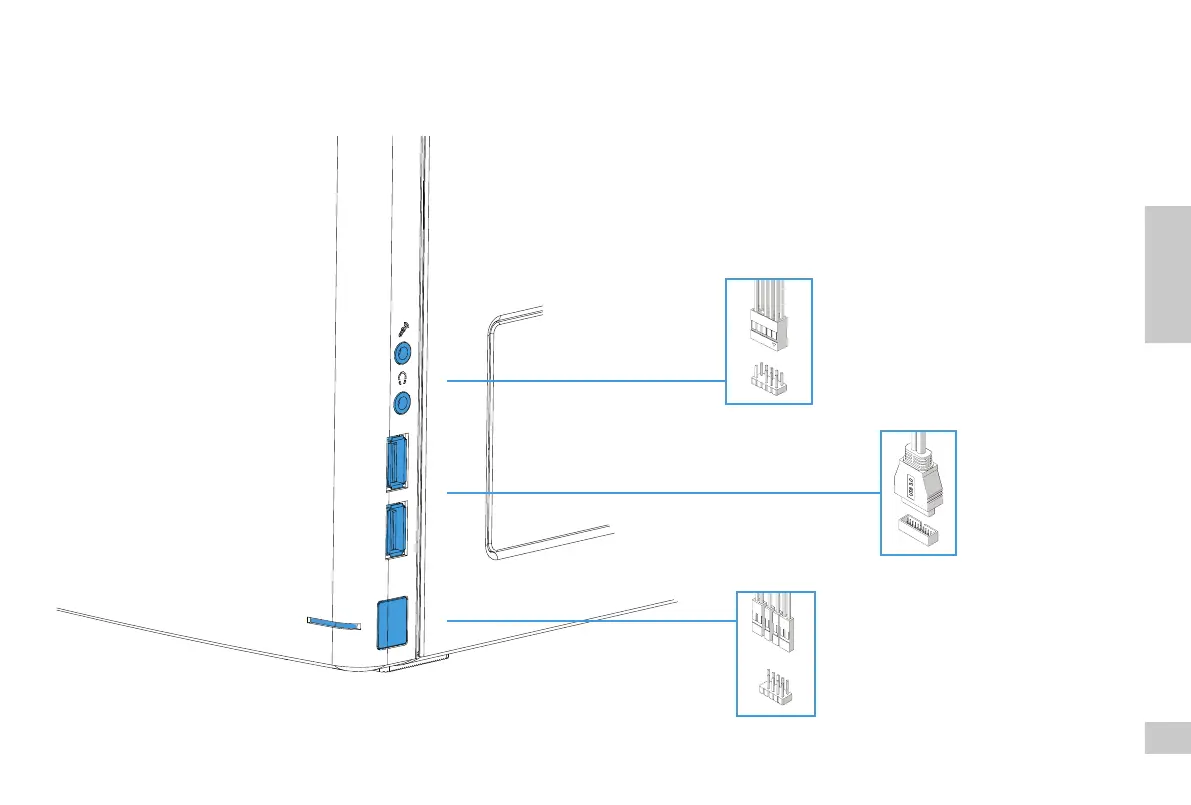 Anschluss der Kabel des I/O-Font-Panels / Connexion des câbles pour E/S avant / Cableado para los puertos I/O frontales / Ansluta främre I/O-kablar /