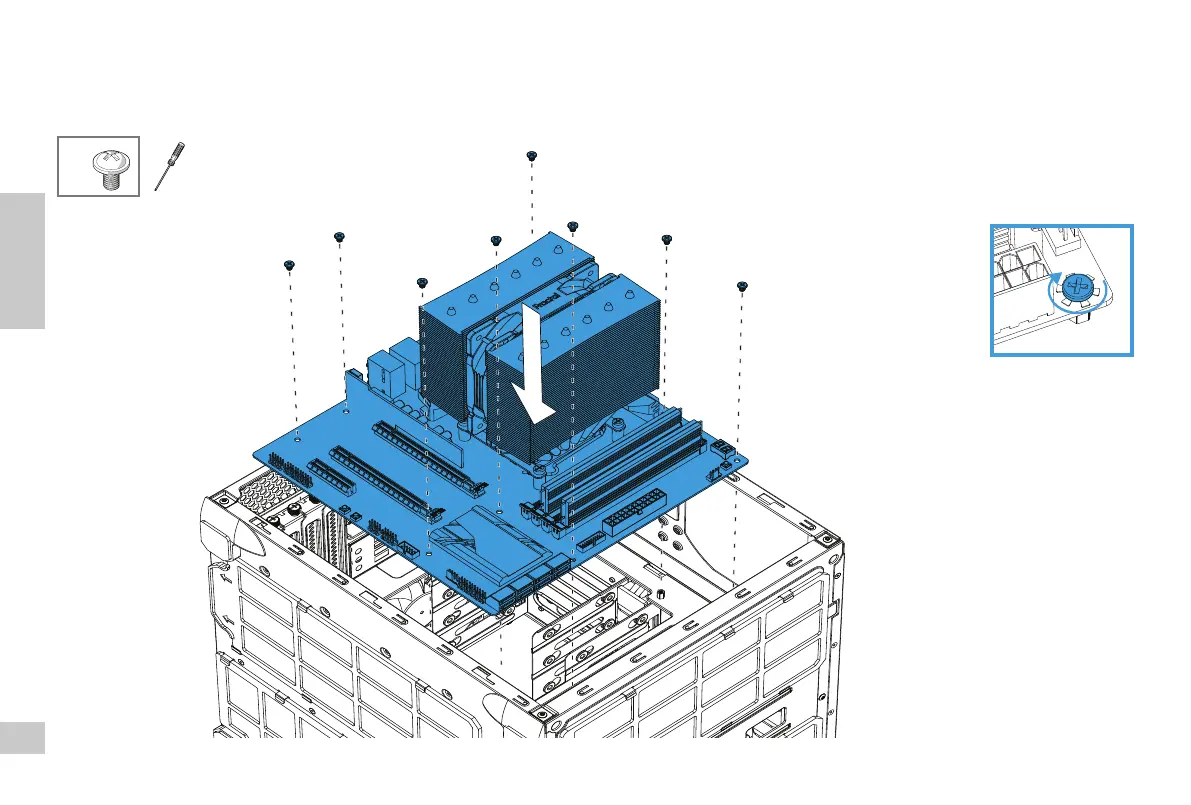 Installation Hauptplatinenzubehör / Installer l’ensemble carte mère / Instale la placa base / Installera moderkortet / Установите материнскую плату /
