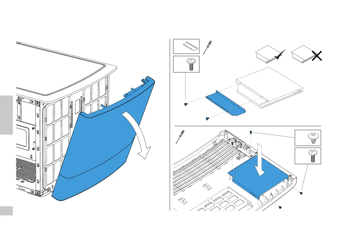 Installation optisches Laufwerk / Installer le lecteur optique / Instale la unidad óptica / Installera optisk enhet / Установите оптический привод / 光学ドライブの取り付け / 安装光驱 / 安裝光碟機