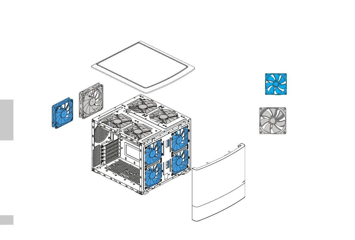 Mögliche Lüfteranordnung / Emplacements possibles des ventilateurs / Posibles ubicaciones de los ventiladores / Möjliga 󰘱äktpositioner / Места для установки вентиляторов /