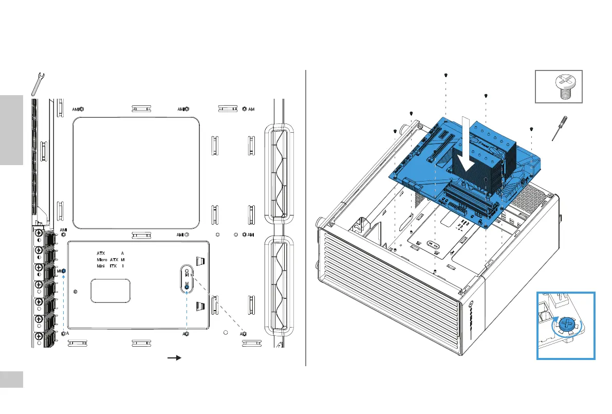 материнской платы со стойками / 重要:マザーボードの取付穴とスタンドオフが一致することを確認してください / 重要:需要找到与主板安装孔相匹配的螺柱 / 重要:須找到跟主機板安裝孔相匹配的螺柱