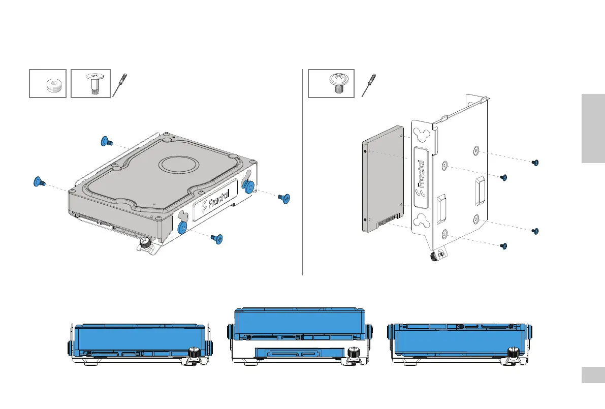 Installation von 2,5‘‘- oder 3,5‘‘-Laufwerken / Installation d’un lecteur de 2,5 ou 3,5 pouces / Instalación de una unidad de 2.5” o 3.5” / Installera en 2.5” eller 3.5” Hårddisk /