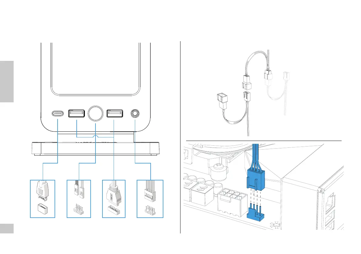 Anschlusskabel für Frontanschlüsse / Connecter les câbles aux E/S frontales / Conecte los cables para