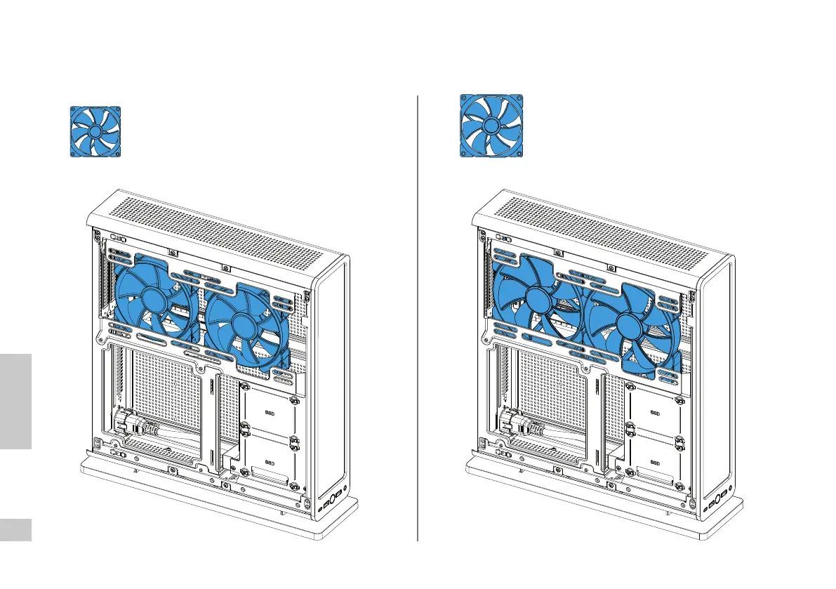 Mögliche Lüfteranordnung / Emplacements possibles des ventilateurs / Posibles ubicaciones de los ventiladores / Möjliga 󰘱äktpositioner / Места для установки вентиляторов /