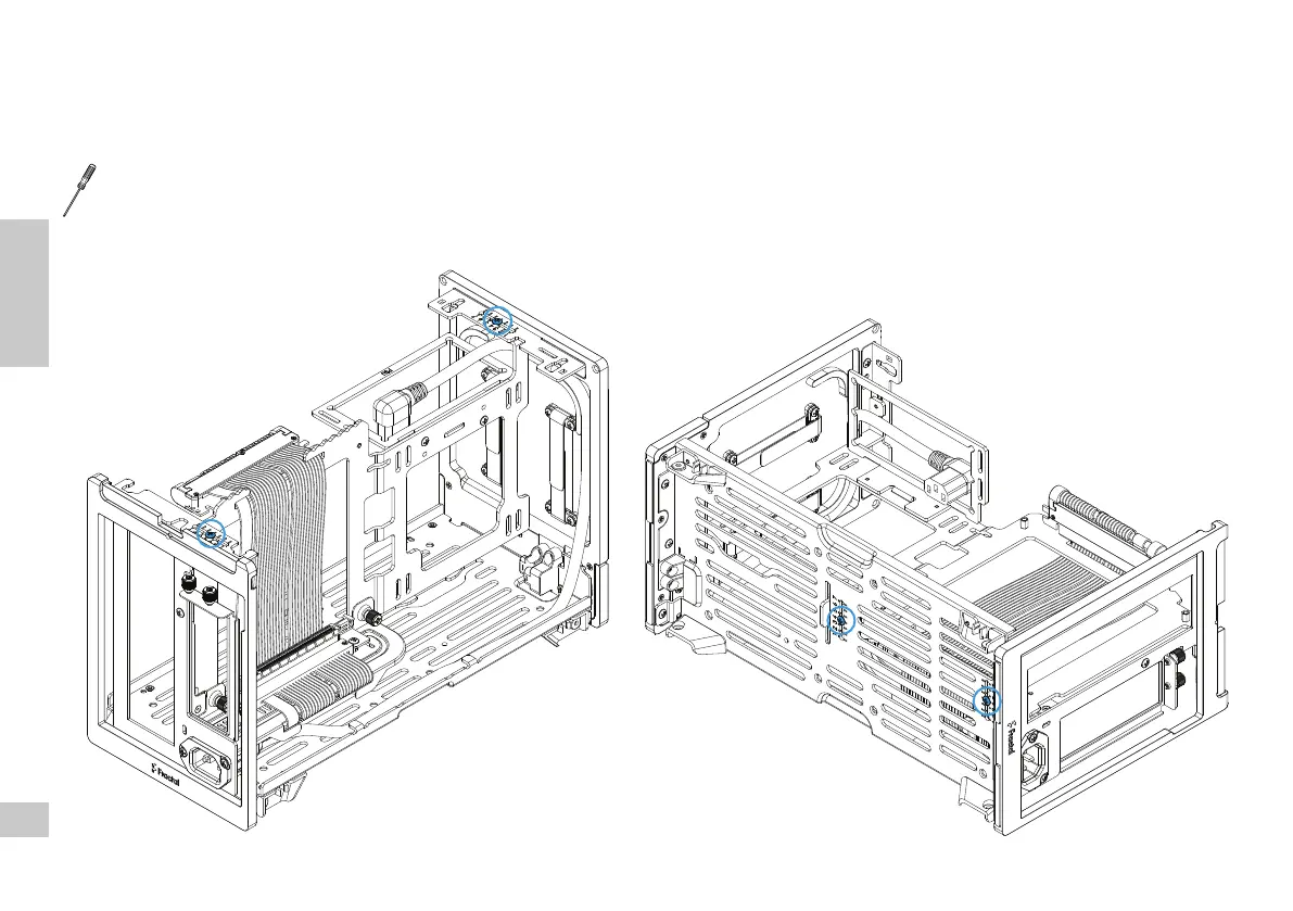 Positionierung der Komponentenhalterung / Ajustement du spine mobile pour le dégagement du matériel / Ajuste la columna móvil para dejar espacio para el hardware /