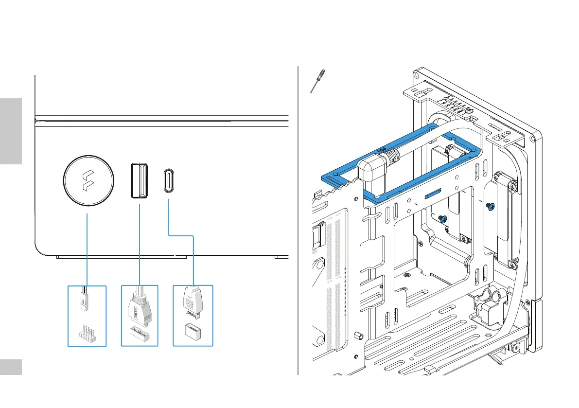 para E/S frontal / Koppla in kablar till fronten / Подсоедините кабели передних устройств