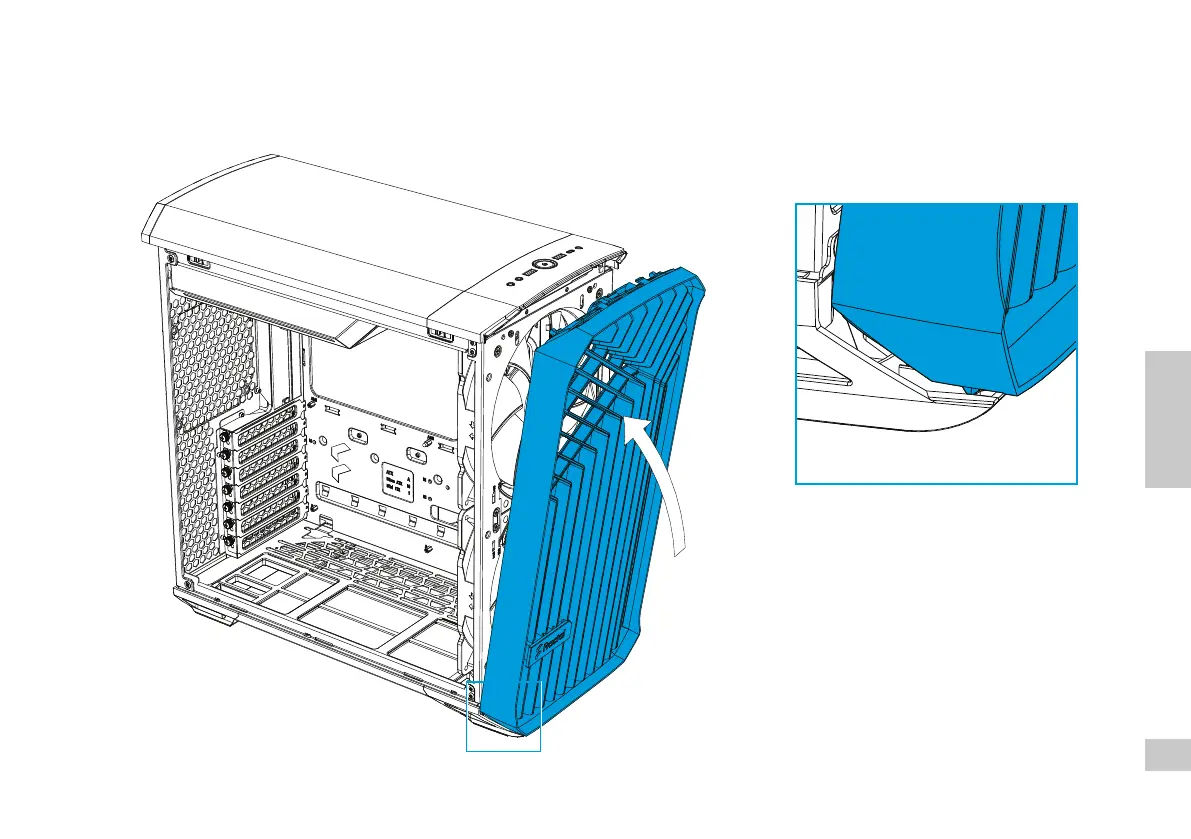 Выровнять переднюю панель, чтобы установить ее / フロントパネルの位置を合わせて再度取り付け / 对齐前面板以重新接上 / 將前面板對齊以重新接上