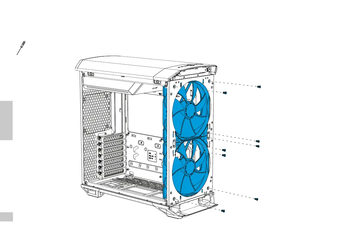180mm Lüfter an der Front ausbauen / Retirez les ventilateurs 180 à l’avant / Retire los ventiladores de 180 mm en la parte frontal / Ta bort 180mm 󰘱äktar i fronten /