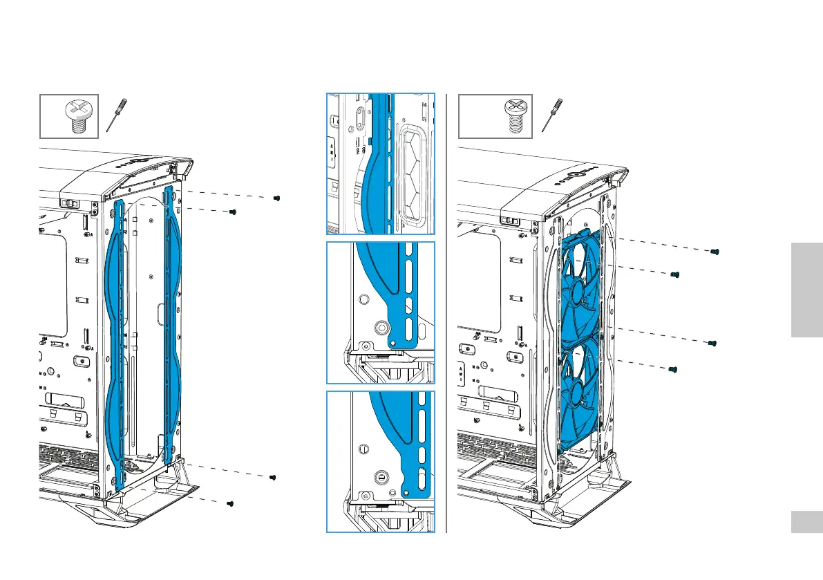 140/120mm Lüfter an der Front montieren / Installez les ventilateurs 140/120 à l’avant / Instale los ventiladores de 140/120 mm en la parte frontal / Montera 140/120mm 󰘱äktar i fronten /