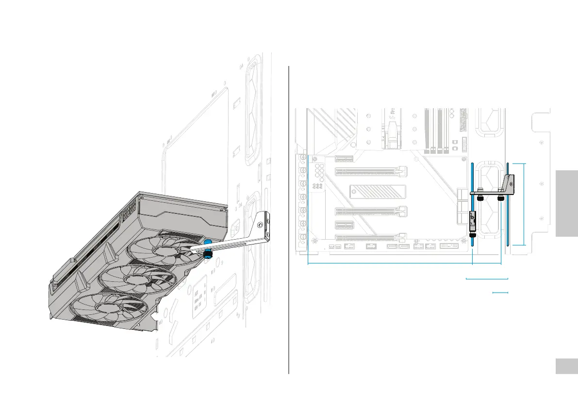 使用底部安装风扇可能会限制GPU支架的范围 / 使用底部風扇可能會限制GPU支架的活動範圍。