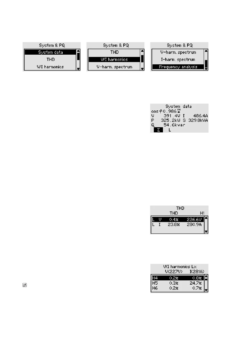 Main menu > Display > System & PQ > V/I Harmonics