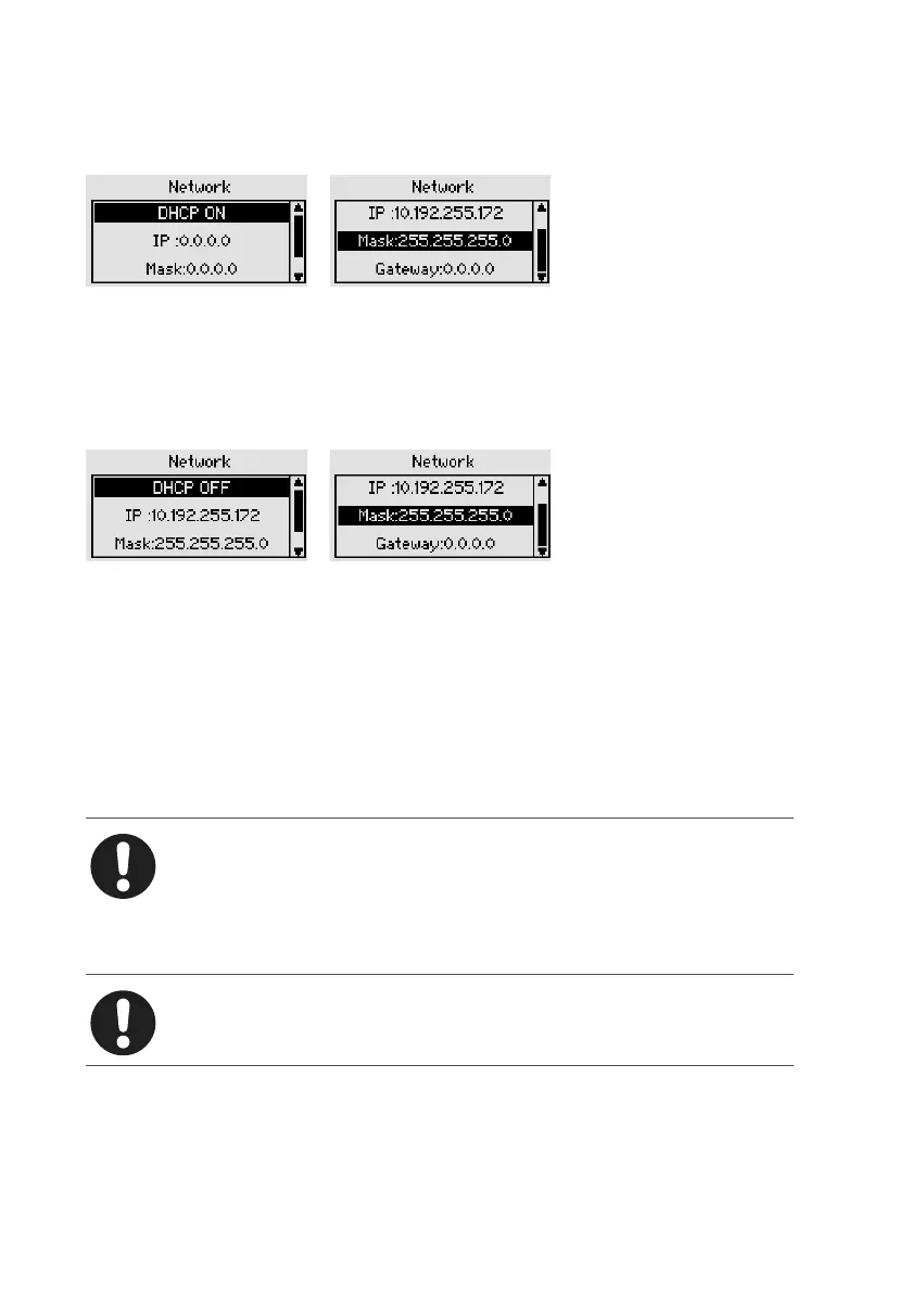 To operate the PQC in DHCP mode, DHCP ON must be selected. The data displayed