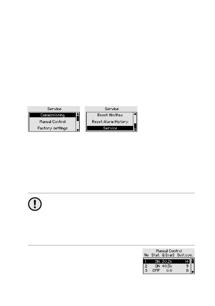 Main menu > Parametrization > Service > Manual control