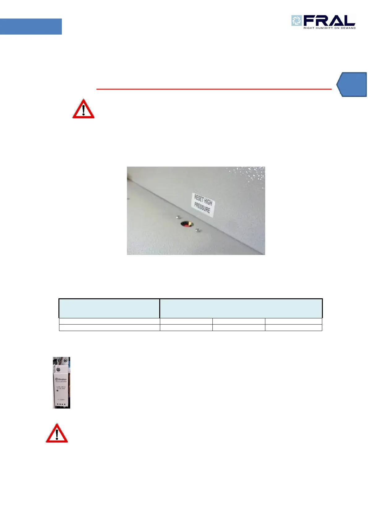 Il riarmo è manuale (va effettuato premendo il bottone sommitale del pressostato posto sotto l’unità) e può