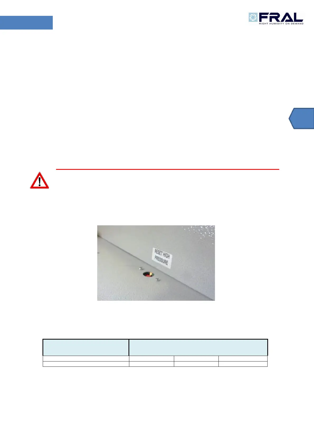 pressing the push-button at the top of the pressure switch located in the electric panel) and can be done only when