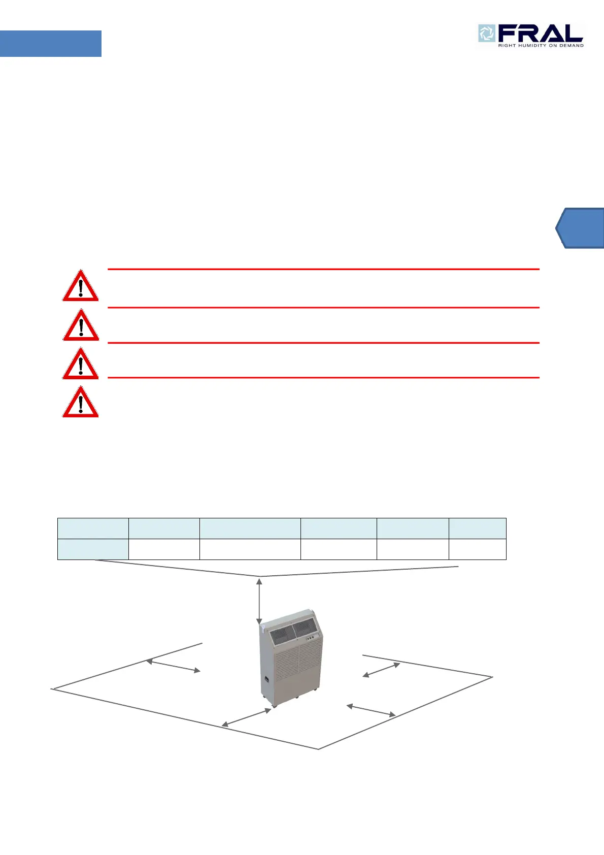 recirculation through the unit that will deeply reduce its performances.For these reasons it is necessary to observe the