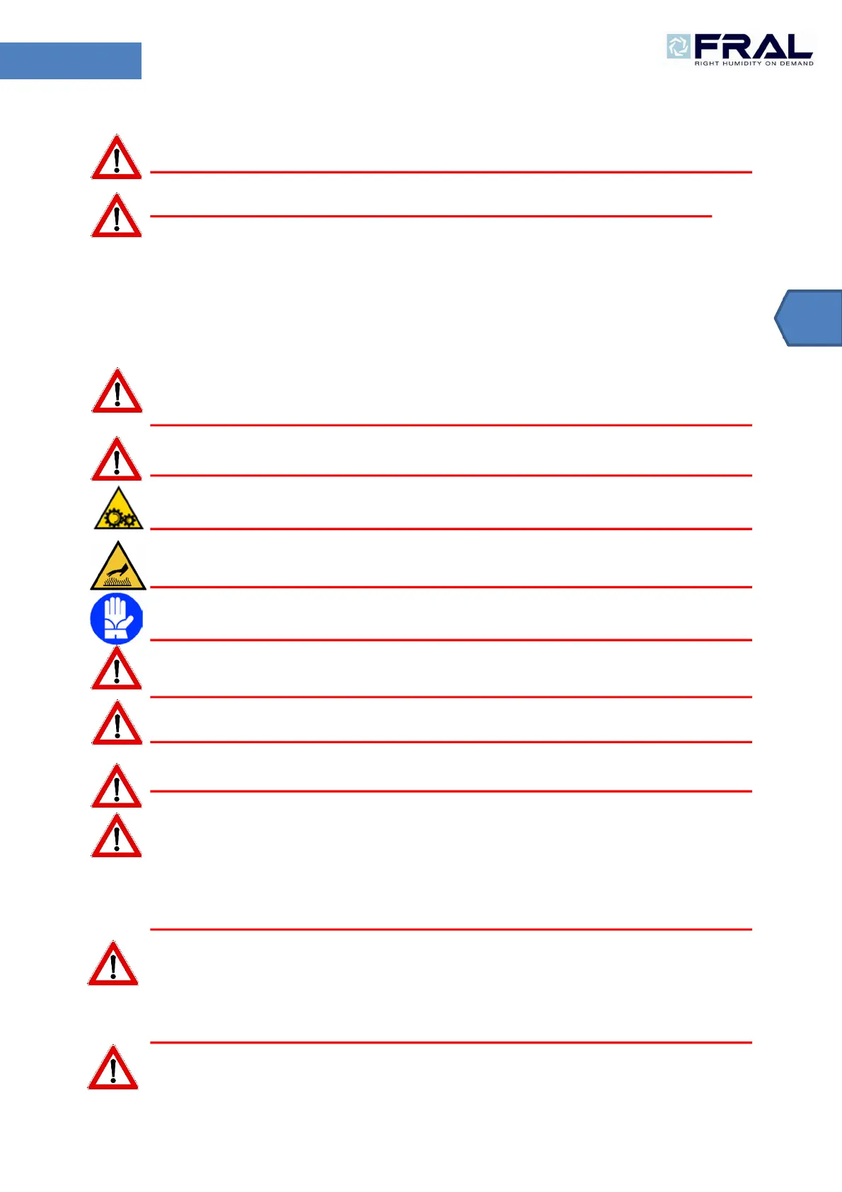 Warning: Pay extrem carefullness during works in the proximity of the machine.