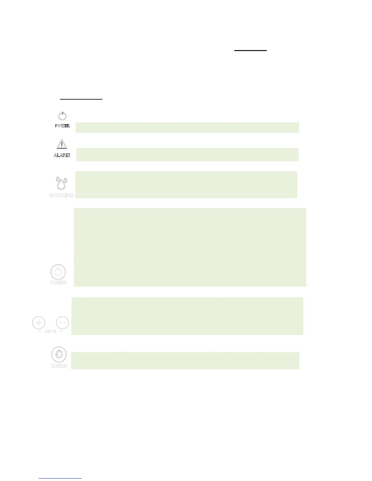 indicate the humidity set; continuing to press SET-/ + you can bring to the set of required moisture