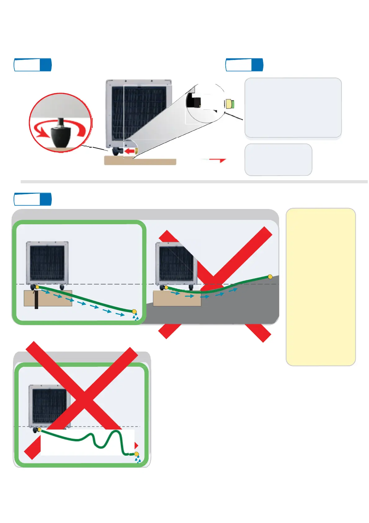 WARNING: No part of hose can be above level of dehumidifier