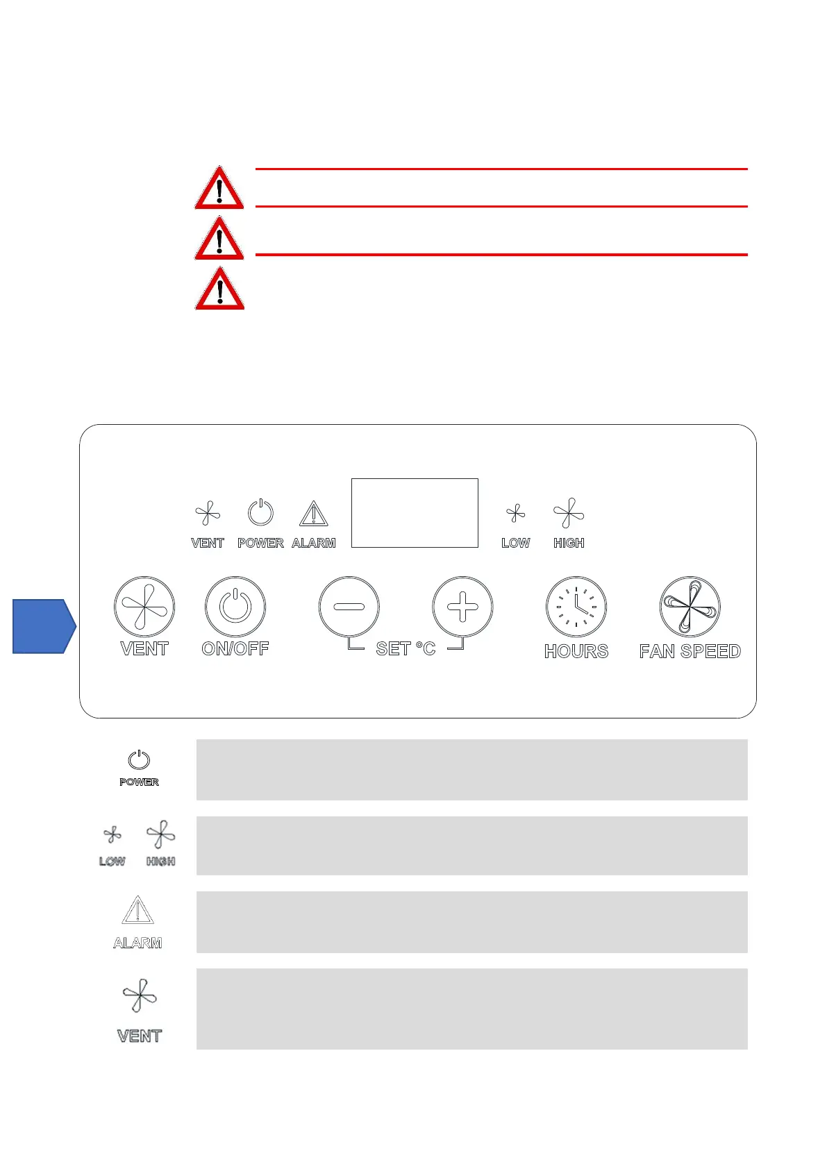 LED VENT: Este LED, cuando está encendido, indica que la unidad funciona sólo con ventilación..