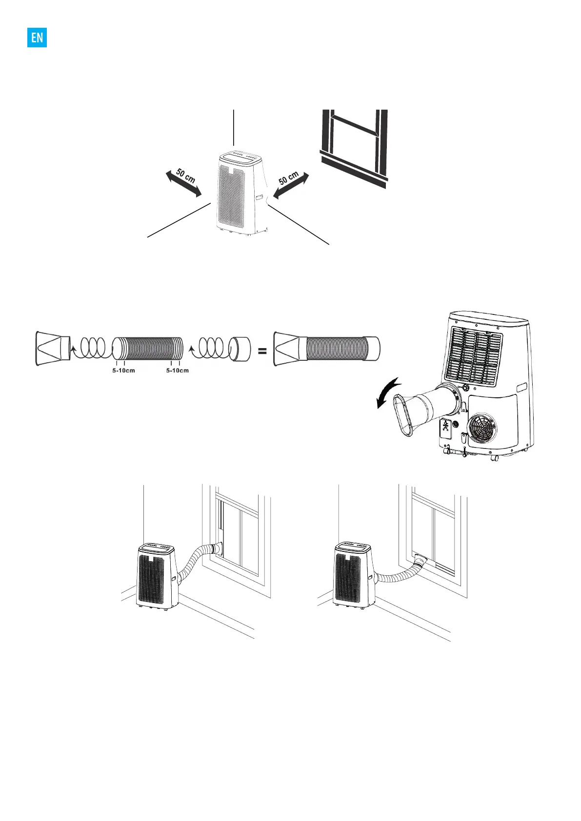Partially open the window, and put in the window adapter vertically or horizontally. Connect the pipe to the adapter, pressing rmly, and make sure it