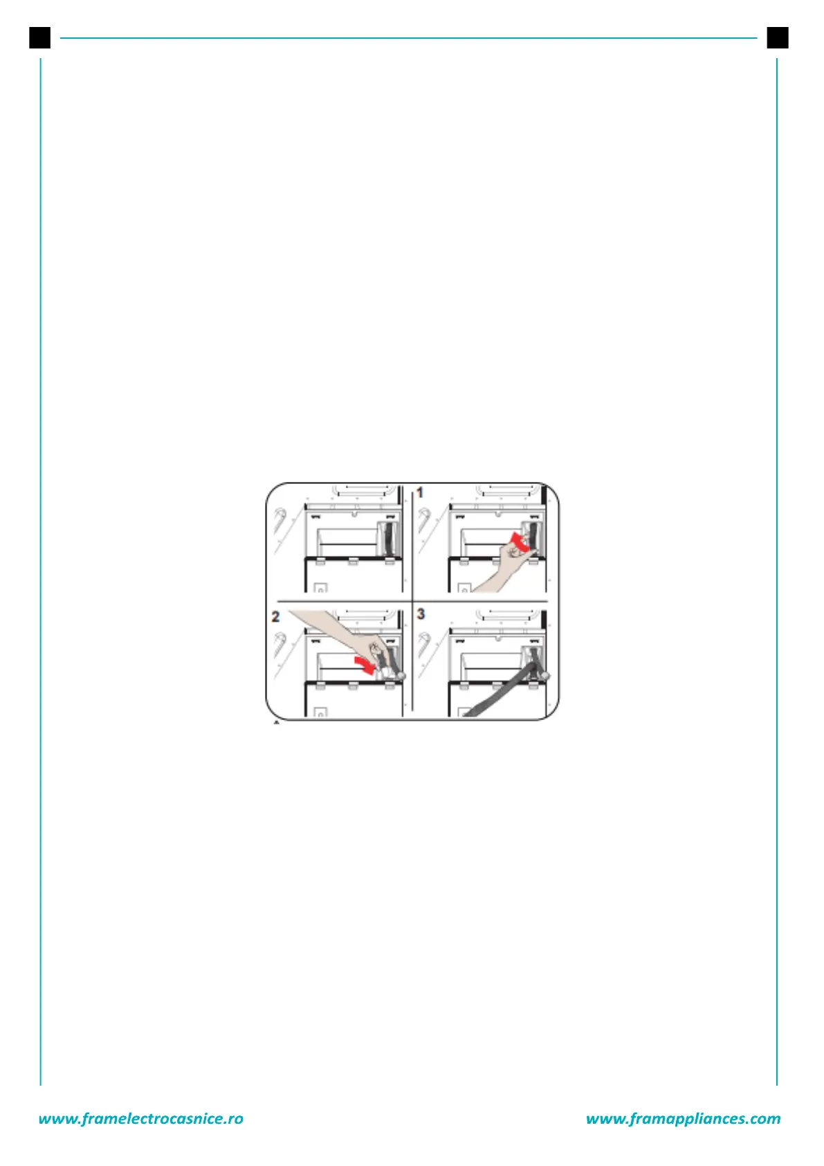 1. Pull and take out the end of the hose at the back of the dryer. Do not use any tools to take out the