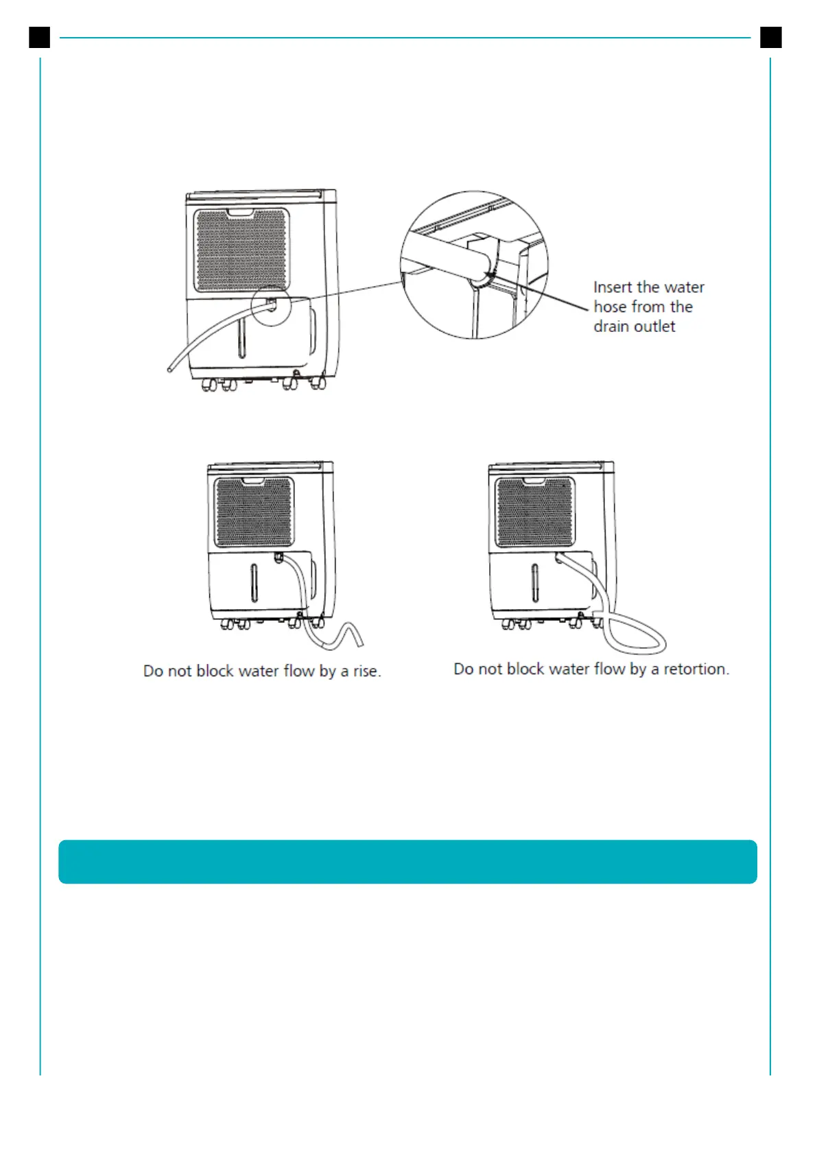 • Make sure the water hose is lower than the drain hose outlet.