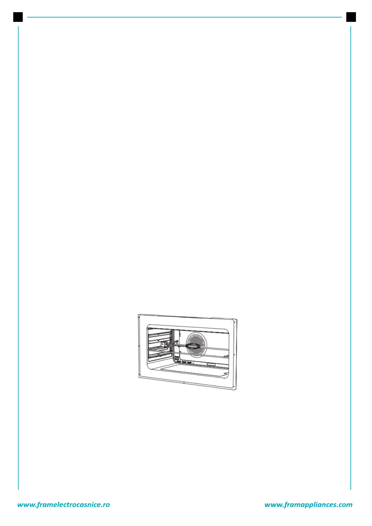 Place the spit on the frame. Slide turn spit frame into the oven at the desired level. Locate a dripping