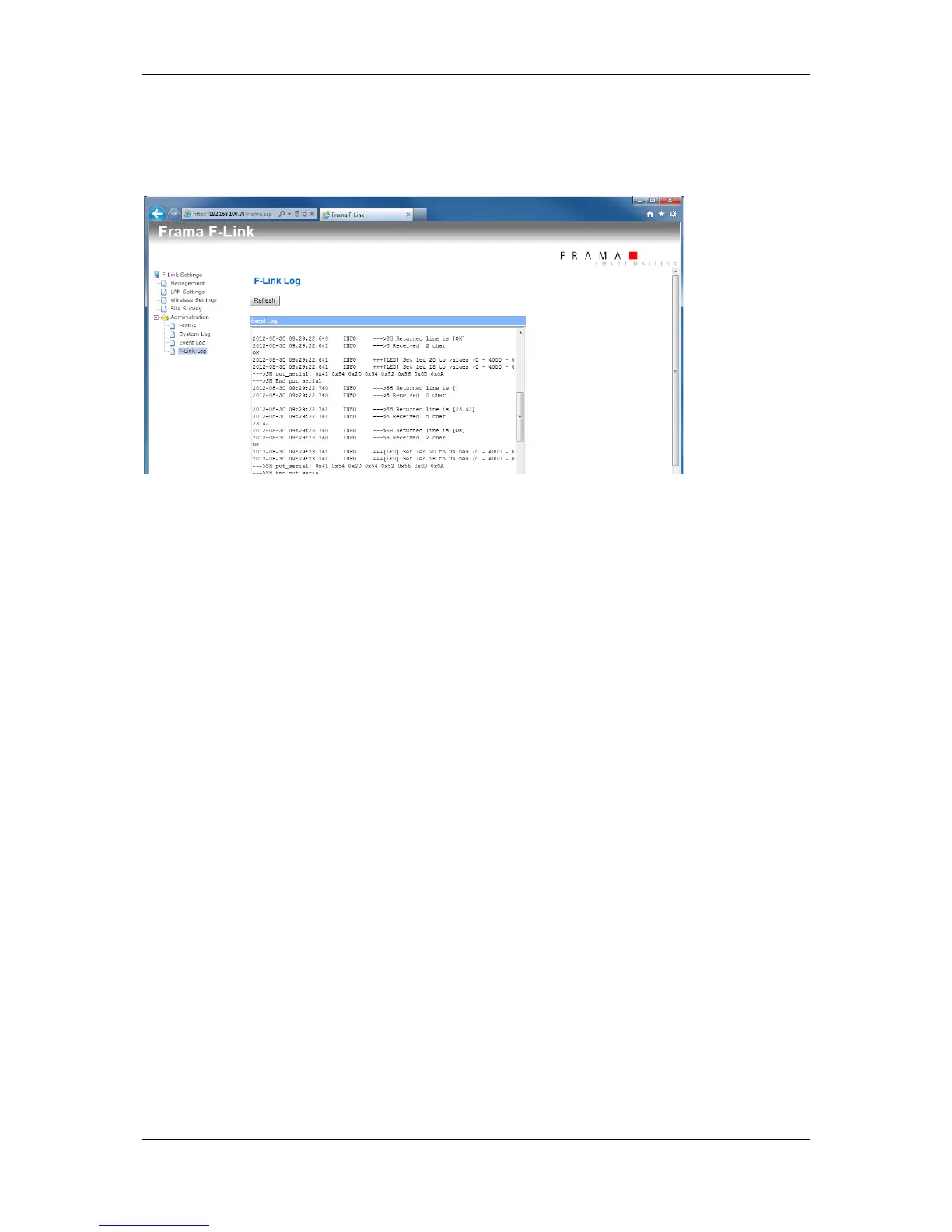 Frama F-Link - 5.10 Configuration Page Administration - F-Link Log