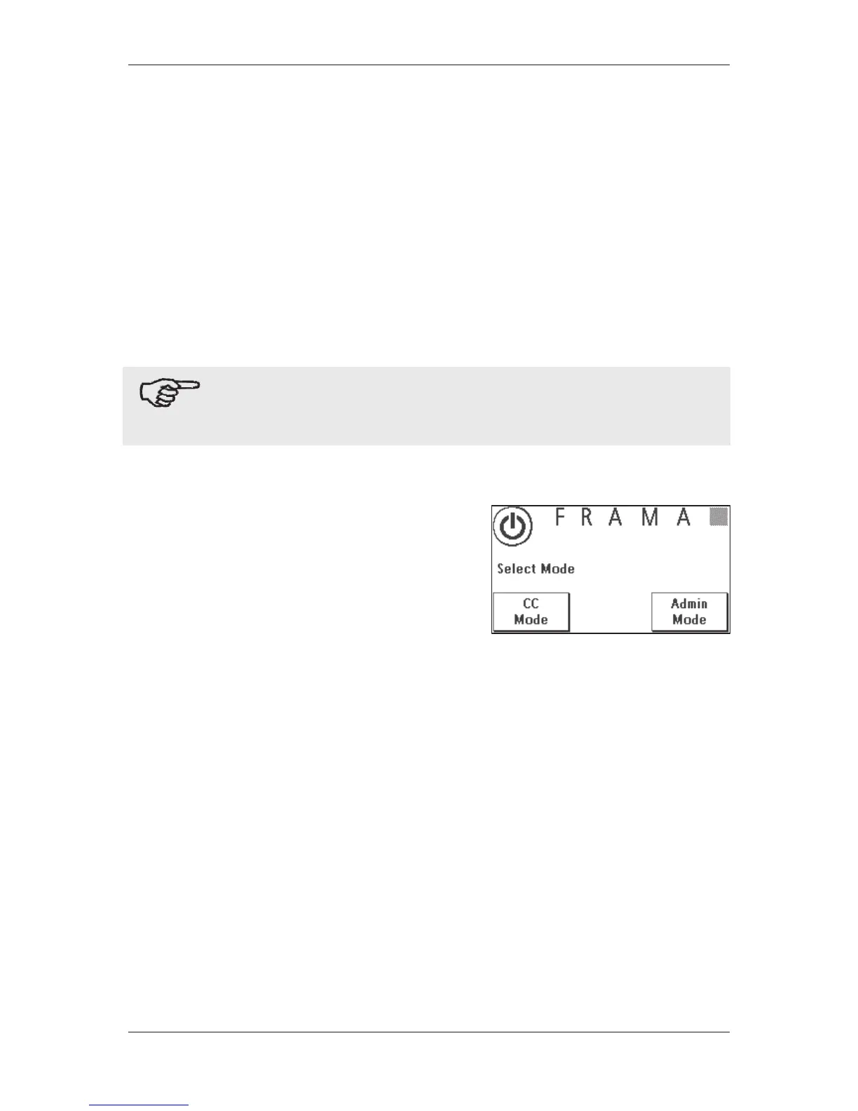 tching on, the operating mode selection screen ap-