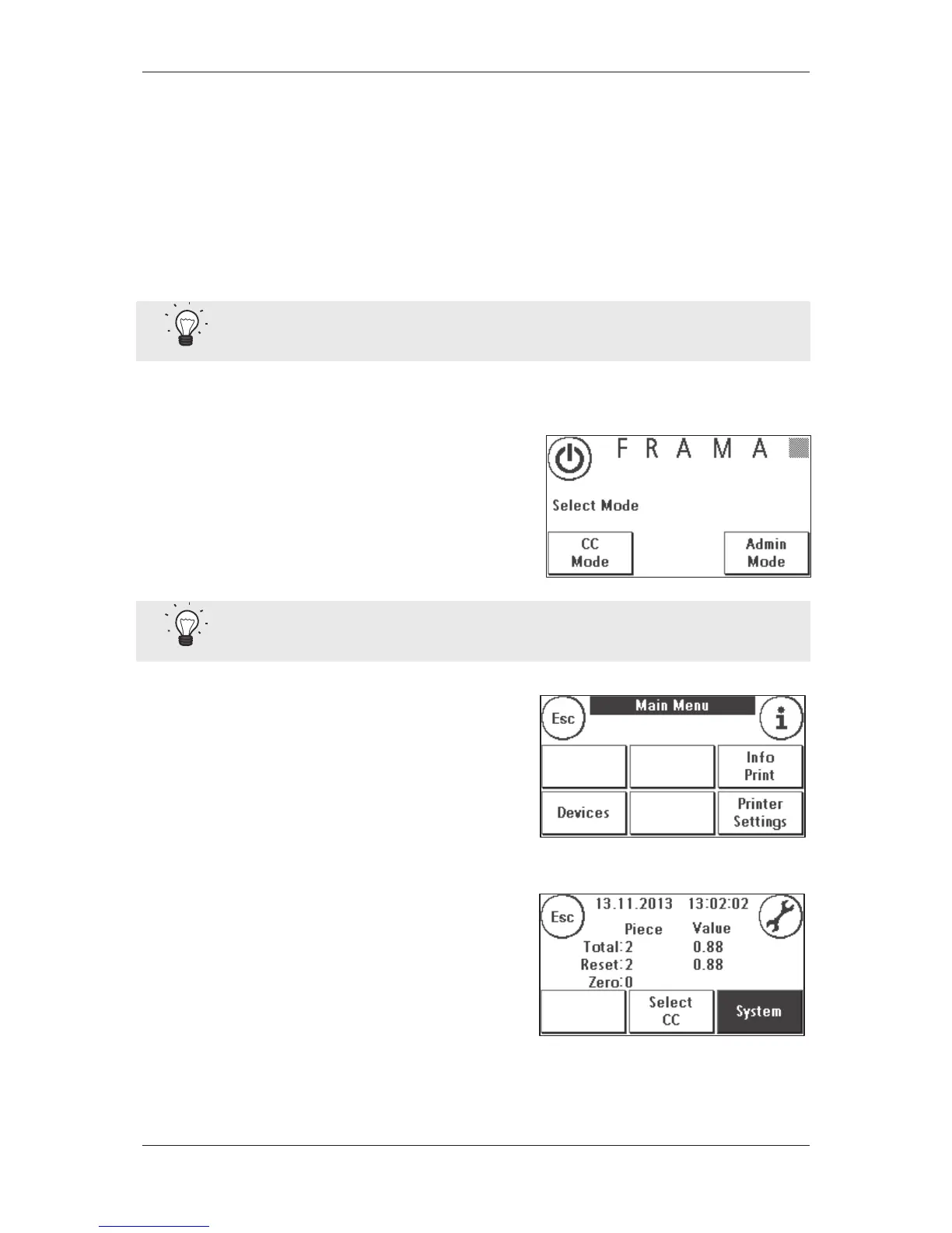 link up with the FramaOnline2 data centre when you are in Admin mode. The following explains in detail