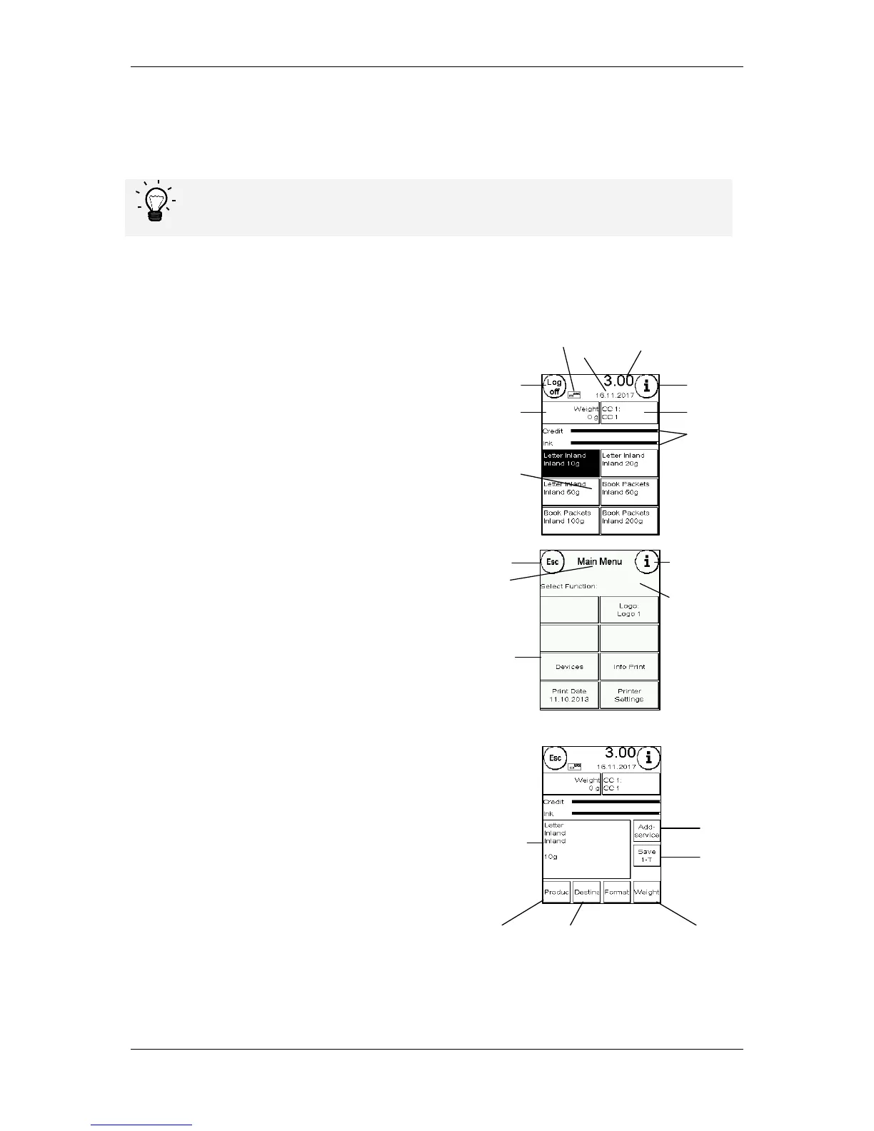 All inputs are made via the touch screen. There are no other keys for operating the machine.