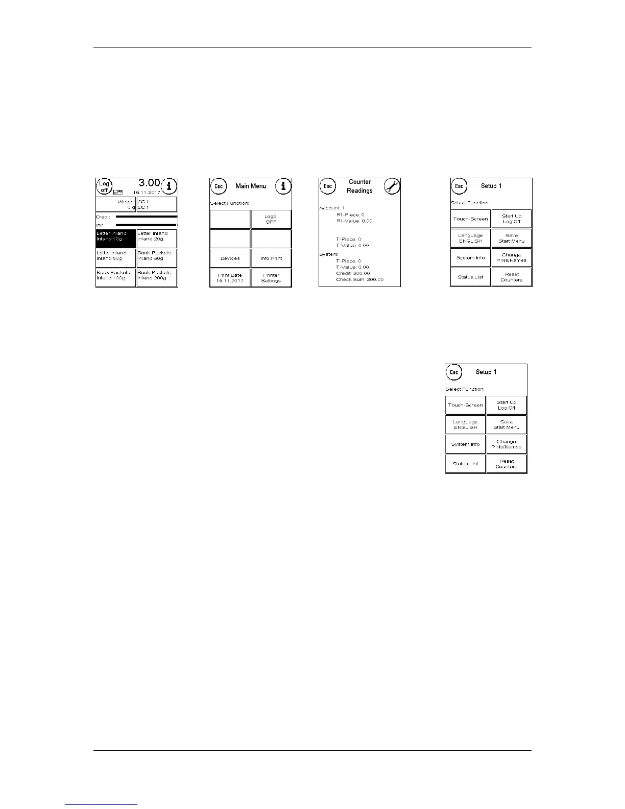 You can adjust various settings for your Frama Matrix franking system in the Setup menu. Outside
