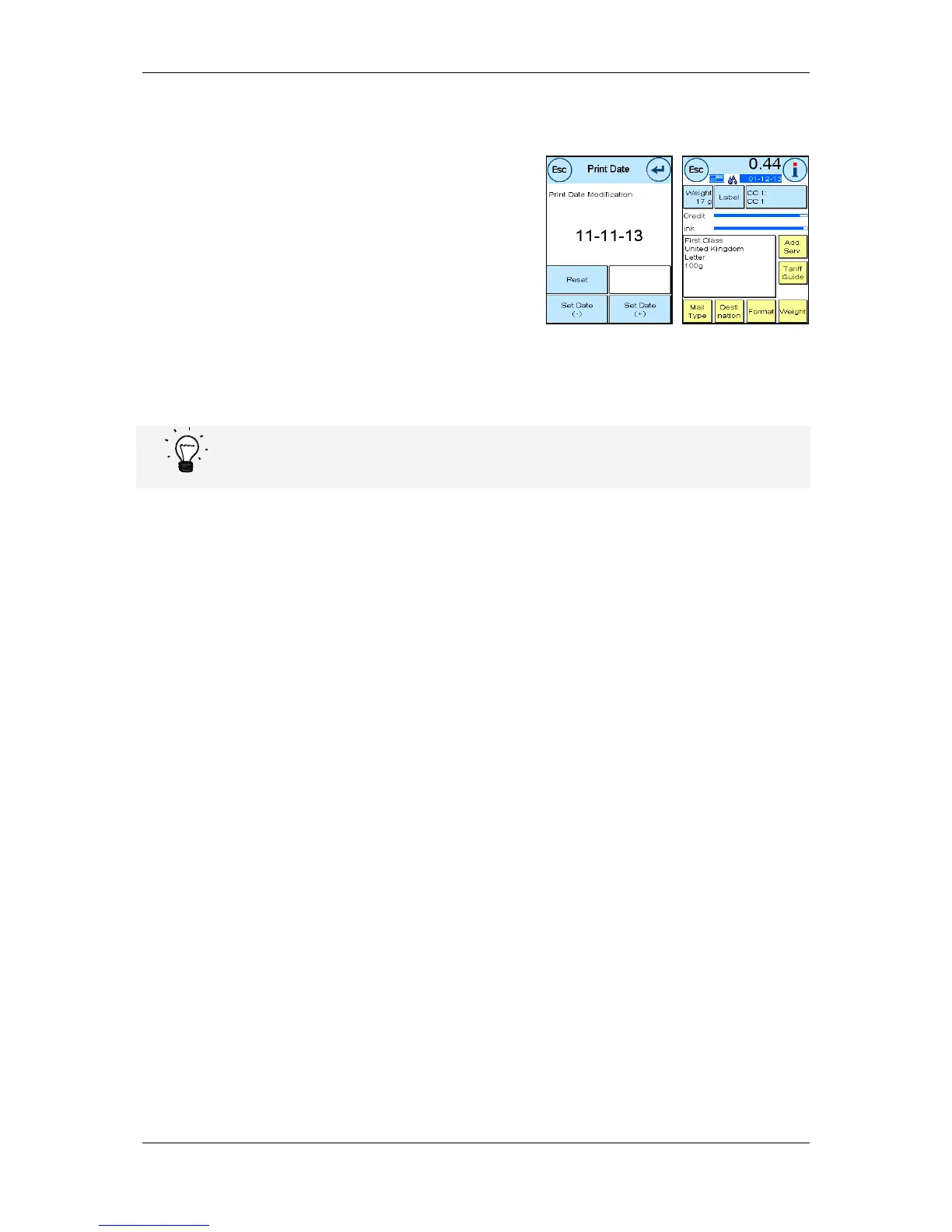 The date brought forward is shown in blue in the franking screen to draw attention to its difference